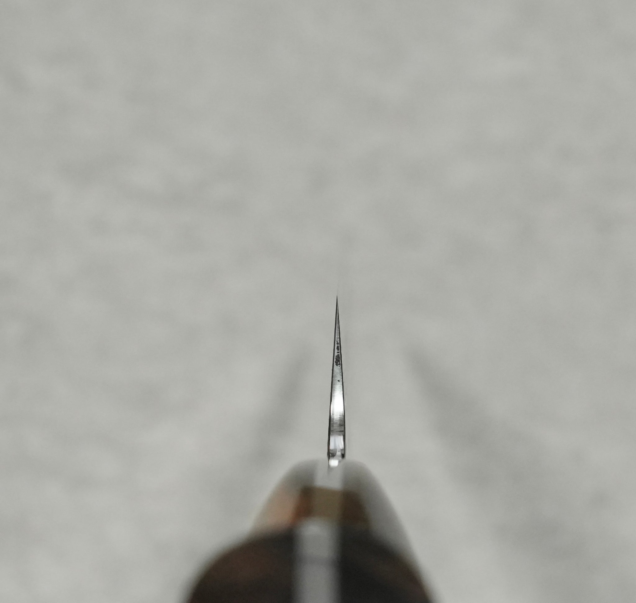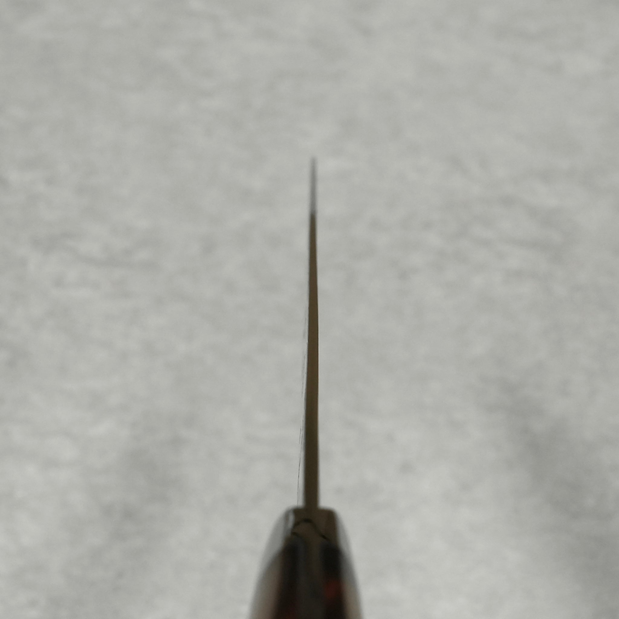 Super Gold 2 is a registered trademark of Takefu Special Steel Co., Ltd., produced through powder metallurgy, resulting in a high concentration of alloying elements. This exceptional steel boasts superior corrosion resistance, exceptional hardness, exceptional toughness, and exceptional wear resistance. Despite its high Rockwell Hardness (HRC), it remains relatively easy to resharpen, while exhibiting outstanding edge retention. These remarkable qualities have earned Super Gold 2 the preference of many renowned Japanese chefs.